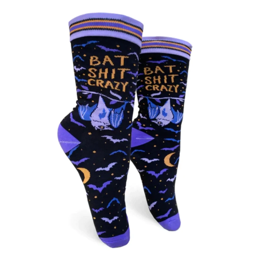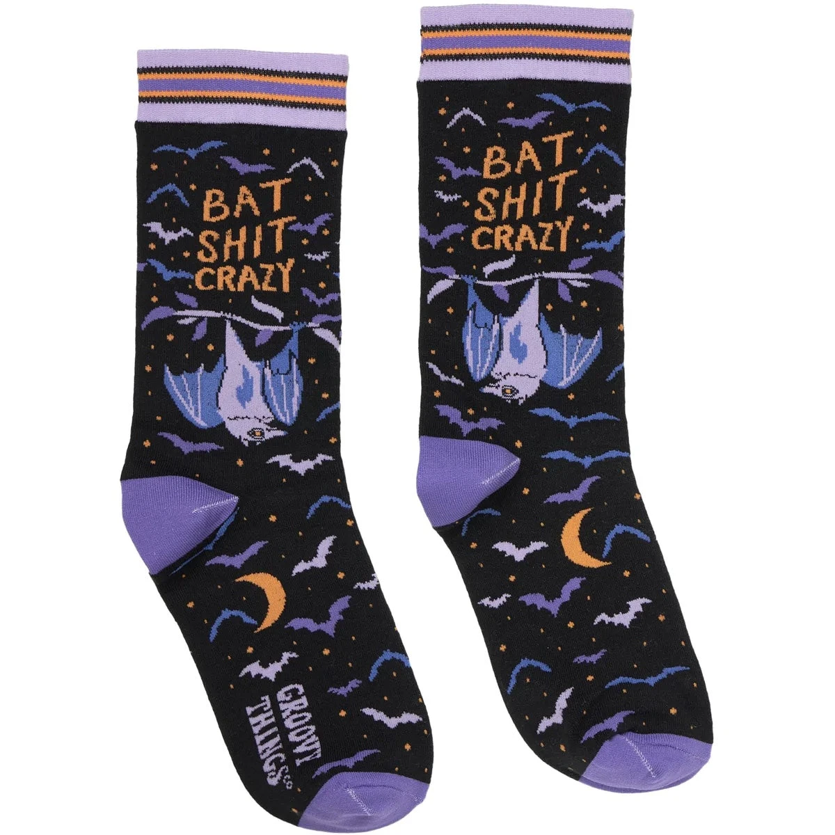 Not regular crazy – Bat Shit Crazy. But in, like, a cute way, you know? Definitely no red flags here whatsoever. 43% Combed cotton, 27% Nylon, 27% Polyester 3% Spandex. Fits women’s approximate shoe size 5-10.5, fits men’s approximate shoe size 3-8.