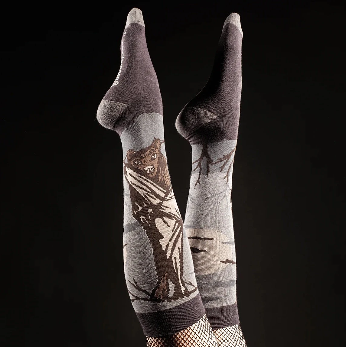 Get ready to rock the night and day away in these wicked cool bat socks. Bats are the only mammals that can truly fly, are nocturnal and may be associated with Halloween and spooky stuff but consider this…one bat can eat hundreds of insects in one hour, and a group of 100 bats can knock out a quarter-million mosquitos and other small insects in a night. On top of this, they have a knack for pollinating plants and dispersing seeds! A lil’ spooky and a whole lot helpful! Crafted from a super soft cotton blend, double terry in the reinforced heel and toe area and smooth seams add durability and comfort with a high thread count so they’re like fancy sheets – but for your feet!