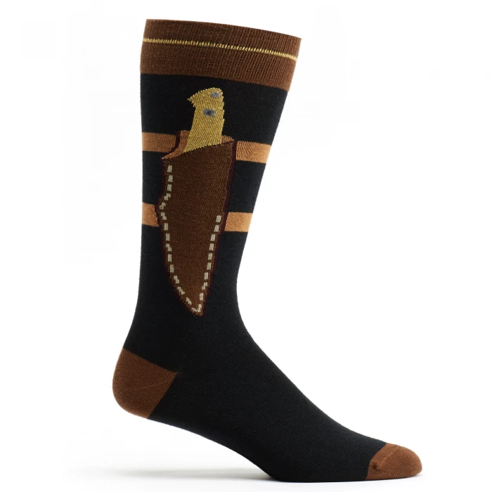 There’s only room for one cowboy in town! Fend off the naysayers with a boot knife that never leaves your side, literally. These sharp looking socks have an unexpected touch of personality with their calf-height stylish sheathed knife design. Perfect socks for the cowboy, hunter or outdoorsmen in your life. Fits approximate men’s shoe size 8-12.5 Contents: 65% cotton, 34% nylon, 1% spandex