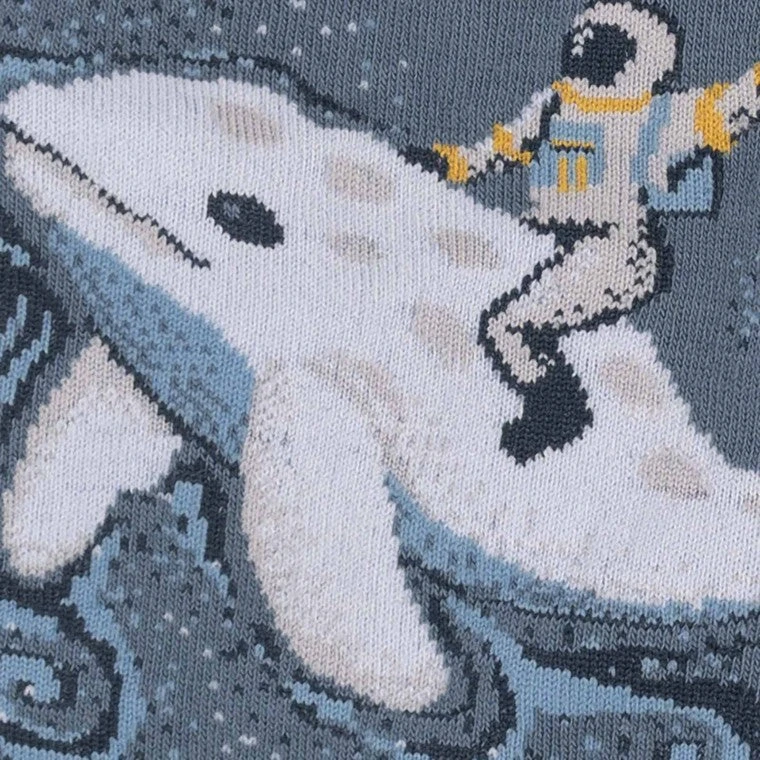 Let us establish some basic facts about space whales, Cosmic Cetaceans, if you will. If the universe is infinite, then they must exist. So while Space Whales are not something we can necessarily prove… but we believe in them anyway. Why? Cause they are undeniably cool, powerful, and adorable. We like to imagine them soaring across the galaxy, experiencing true freedom. Ah, to be a space whale. And maybe, just maybe, if you can get close enough to a space whale, you can climb aboard for a ride. If it’s always been your dream to ride a space whale, don’t worry, you’re not alone. Even though it may not yet be possible, these Cosmic Cetacean Crew Socks will make you feel like anything is.