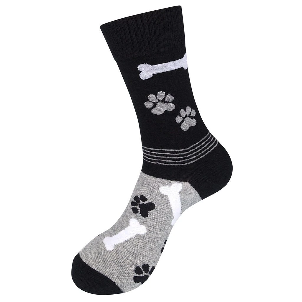 Who rescued who, amiright? Leave your designer breeds behind, and show some love to those dogs that need it the most. These are for or all the Heinz 57, brown dogs, curs, hound dogs, feist, pooches and mystery mutts that capture our hearts. Show some love to your adopted pet with these “I Love My Rescue” socks. An adorable way to express your pride, love your rescue, and wear cute socks, too. Black and grey, red heart and a pattern of black paw prints and white dog bones. Red accent at toe, heel and cuff. One size fits most, approximately women’s shoe size 7.5-12 and men’s shoe size 6-11. Content: 70% cotton, 28% polyester, 2% other. Made in the USA.