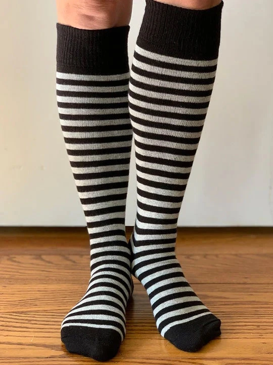 Seleh Ebony Stripe Organic Cotton Knee High Socks