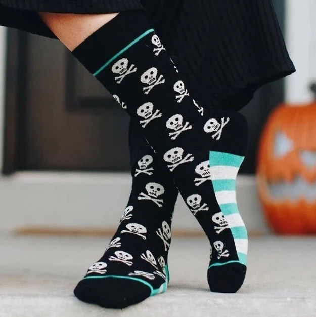 Ahoy, me hearties! Go ahead and Fly the Jolly Roger and take charge of your day! Each pair of socks is made with high quality woven cotton that feels soft and luxurious and features extra padding in the seamless toes and heels to make your feet extra happy.