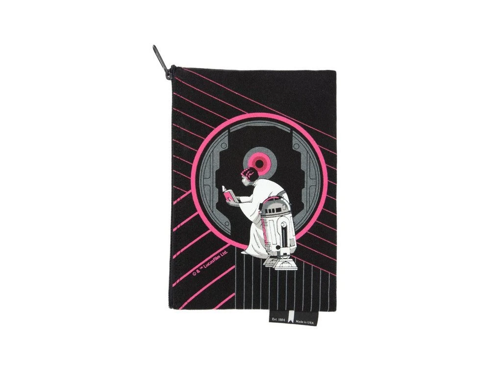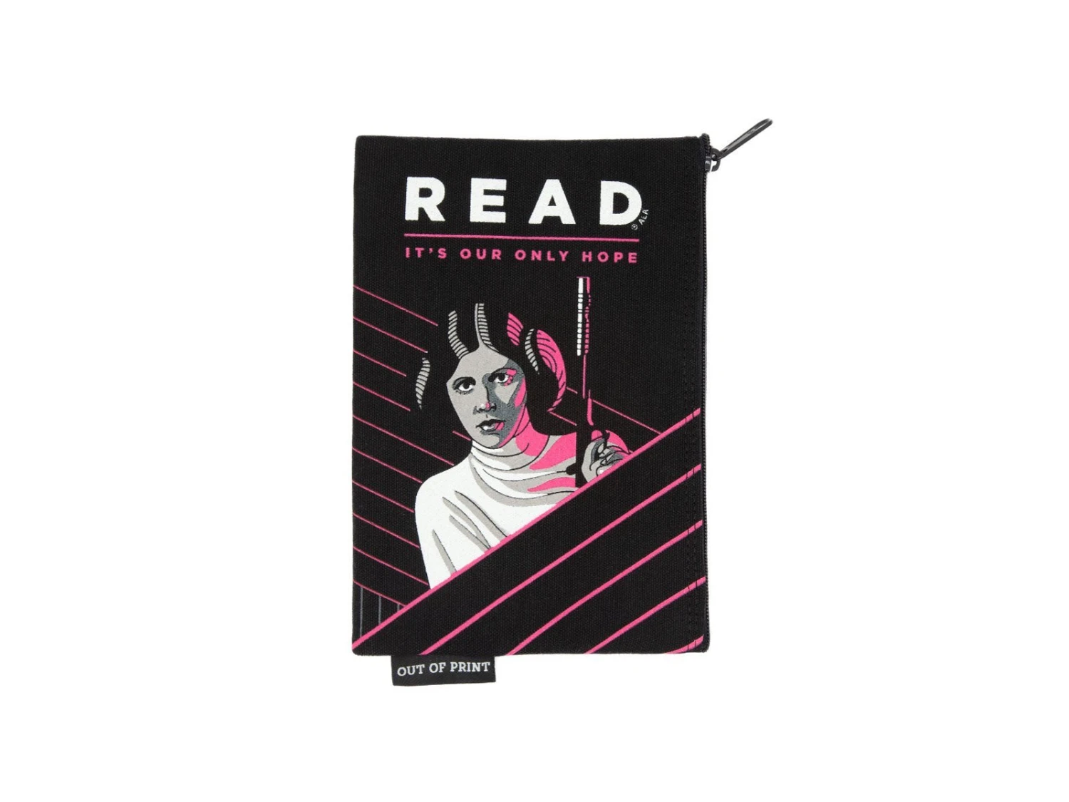 A woman’s place is in the Resistance. Whether you first met her as a Princess, a Senator or a General- Star Wars Leia Organa’s great leadership, fearlessness and dedication to ending the tyranny of the Empire has inspired generations of imaginations. Follow her heed and “READ, It’s our only Hope”. Featuring episode IV-A New Hope’s Princess Leia with signature hair buns and blasters as well as reliable droid R2-D2 in shades of burgundy, red, black, grey and white. 100% cotton canvas, Zipper enclosure, 9″ w x 6″ h, Made in the USA. Each purchase helps to fund literacy programs and book donations to communities in need.